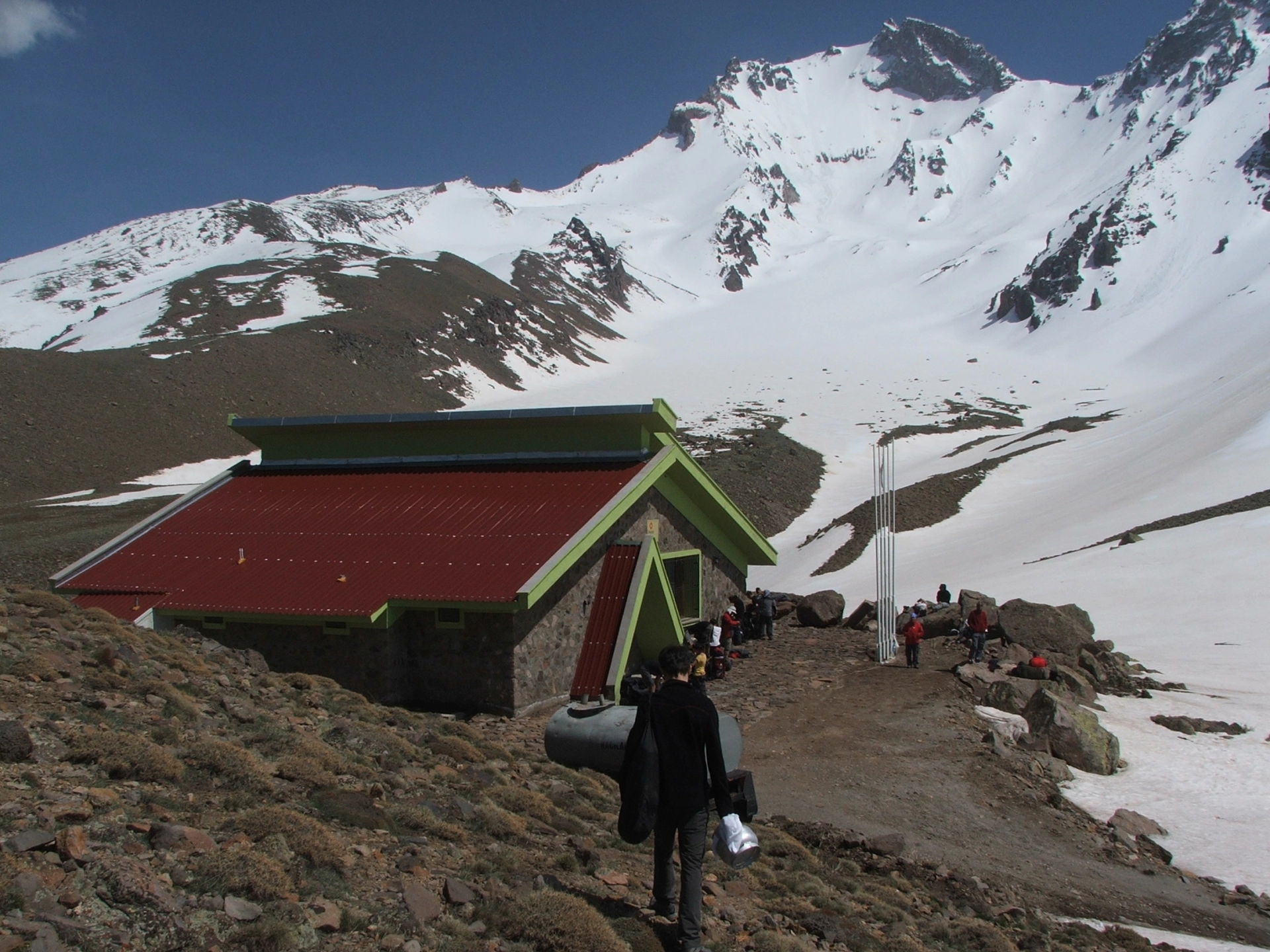 Dağ evine ulaştıktan sonra çadırlarımızı kuruyor ve zirve hazırlıklarımızı yapıyoruz. Günün geri kalanında dinlenme ve hazırlık için serbest zaman olacaktır.